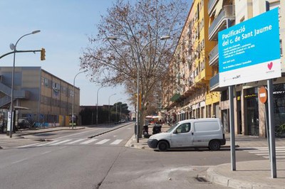 Amb aquests treballs, d'una banda, es donarà per finalitzat el projecte de pacificació del carrer de Sant Jaume, desprès del bon resultat de la prova pilot realitzada, amb un únic sentit d'entrada de vehicles i la col·locació de pilones que mantenen l'espai reservat a l'ampliació de voreres. El regidor de Mobilitat i d'Espai i Via pública, Fran Sánchez, ha explicat que "s'ha aconseguit reduir el trànsit i, alhora, la contaminació acústica i atmosfèrica a la zona i tot plegat, a més, ha fet que s'hagin obert més negocis en aquest tram de carrer".