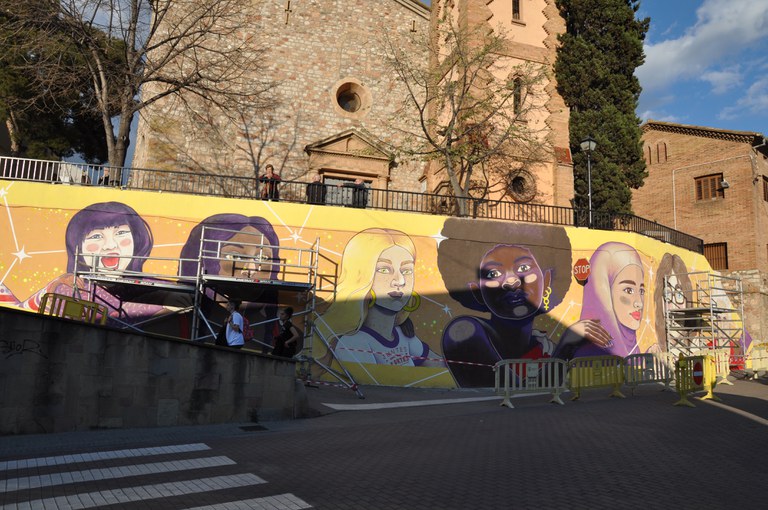 En el marc de la campanya "Cada dia és 8 de març. Trobem-nos els dies 8 a les 8", el Comitè de Dones de Ripollet va aplegar ahir dilluns 8 d'abril desenes de persones per inaugurar el mural feminista al mur del carrer de Padró, davant l'església, obra de l'artista Maga.