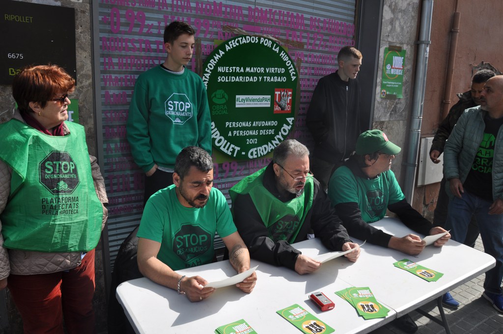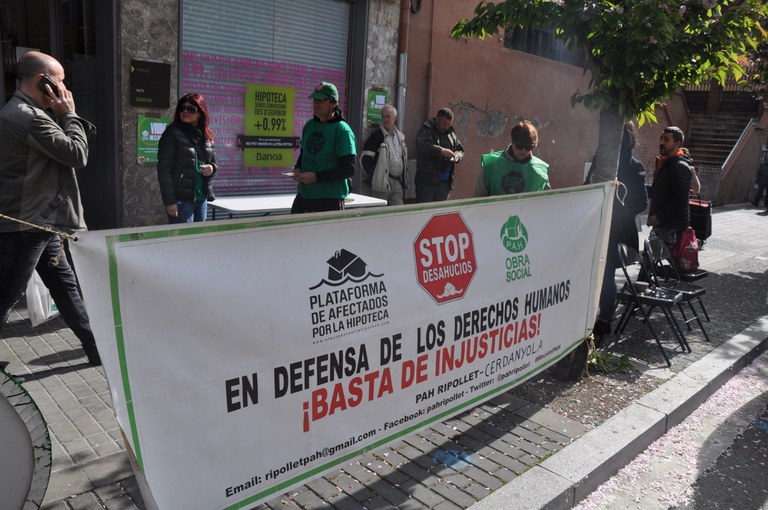 La PAH Cerdanyola-Ripollet ha organitzat un acte per reivindicar l'habitatge digne durant la campanya electoral, davant de la sucursal de Bankia de la rambla de Sant Jordi. Ho ha fet una comissió liderada per Antonio Rosa, que ha anunciat que la PAH apel·larà als partits polítics perquè "es comprometin a posar fi als desnonaments, augmentin el parc públic d'habitatges i a que no augmenti l'emergència habitacional".