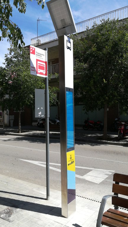 En aquests pals es pot consultar la informació de parades i horaris de les diferents línies que hi paren. La instal·lació s'ha realitzat a través d'una adjudicació a l'empresa Capmar, per un import de 16.734,30 € (IVA inclòs). Amb un disseny modern, els pals són d'acer inoxidable i estan retolats amb l'escut de l'Ajuntament i els colors de la bandera de la ciutat.