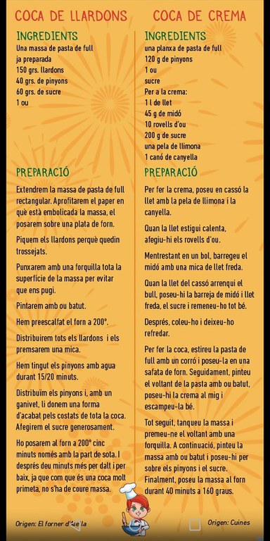 Per accentuar la campanya, dimecres, 19 de juny, a les 11h, s'organitzarà una classe de cuina per aprendre a fer coca de Sant Joan, a més de repartir durant aquests dies fulletons, com els que es troben adjunts en aquest article, en els que es poden trobar les receptes de dos tipus de Coca feta amb ingredients del Mercat.