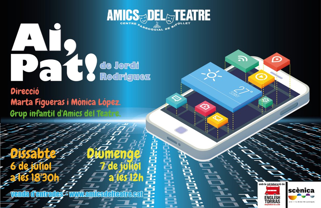 El cap de setmana del 6 i 7 de juliol, a les 18.30 i les 12 h, respectivament, el Centre Parroqual de Ripollet acollirà l'obra "Ai, Pat!", de Jordi Rodríguez, del grup infantil d'Amics del Teatre, amb la direcció de Marta Figueras i Mònica López.