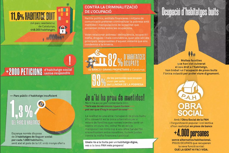 L'associació reitera que les persones que ocupen "ho fan per necessitat, el 93% d'aquestes persones viuen per sota del llindar de la pobresa [...] i viuen situacions d'intranquilitat i angoixa constants". Finalment, argumenten que "tenir una propietat buida hauria de ser una cosa insostenible" i anuncien que seguiran les seves accions reivindicatives.