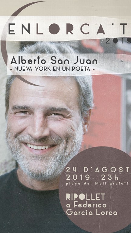 L'Enlorca't torna a Ripollet dins dels marc dels actes de la Festa Major 2019. El reconeixement al poeta i víctima del feixisme inclou dos espectacles, un d'ells d'estrena, que giren al voltant de la seva obra i de la seva personalitat. El primer es tracta de l'espectacle 'Nueva York en un poeta', del reconegut autor Alberto San Juan, sobre el viatge i l'estada de Lorca a Nova York el juny de 1929. Allà va ser testimoni del Crack del 29,que va desembocar en el llibre 'Poeta en Nueva York' el 1930.