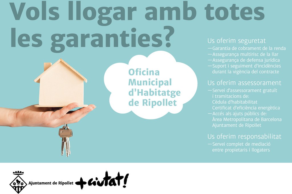 L'Oficina Municipal d'Habitatge acaba de posar en marxa un servei de gestió de lloguer de pisos amb garantia de cobrament. Inclou assegurances multirisc, de defensa jurídica i seguiment d'incidències del contracte.