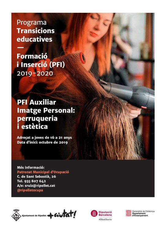 Oberta la preinscripció per als PFI d'Imatge Personal i auxiliar d'oficina