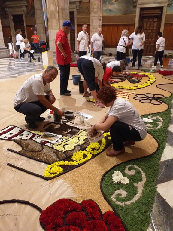Ripollet Cultura i Tradició porta les catifes de flors al Palau de la Generalitat