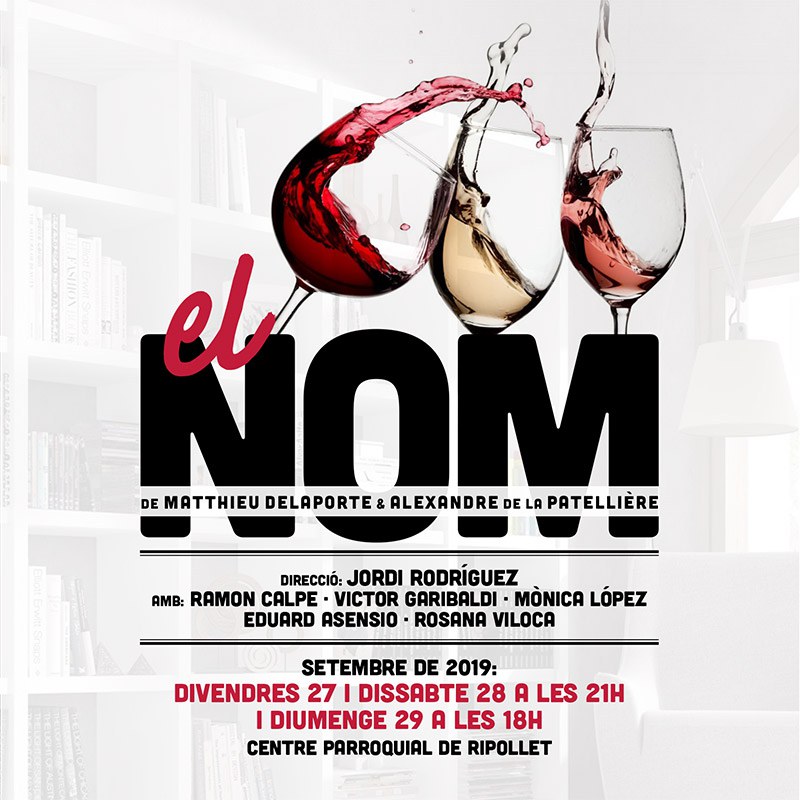 Els Amics del Teatre de Ripollet arriben aquest cap de setmana al Centre Parroquial amb l'obra El Nom, de Matthieu Delaporte i Alexandre de la Patellière, dirigida per Jordi Rodríguez. El Nom és una comèdia divertidíssima sobre la conversa que té un grup d'amics durant un sopar, que arrel de preguntes d'allò més trivials acaben en un embolic de confessions i posen al límit les seves relacions.