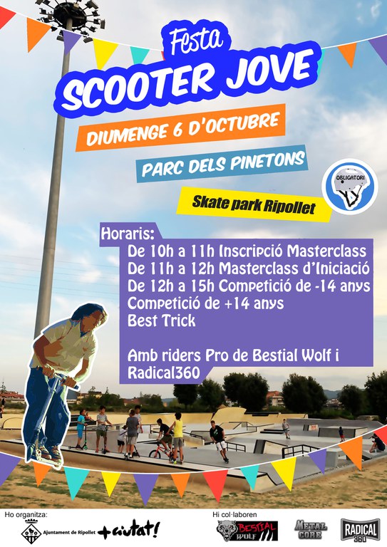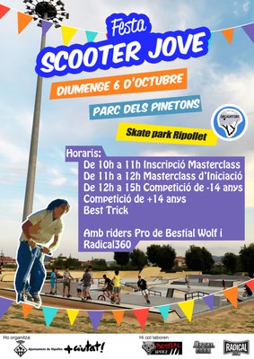 El diumenge 6 d'octubre al matí el nou Skatepark dels Pinetons acollirà la Festa Scooter Jove. Organitzada per la Regidoria de Joventut comptarà amb una masterclass d'iniciació per a infants i joves, seguida de competicions de Best Trick (acrobàcies i habilitats). L'acte va adreçat a públics de tots els nivells i edats. No obtant això, els menors de 16 anys hauran de portar una autorització que es podrà recollir al lloc de l'activitat o durant la setmana al Casal de Joves. També és obligatori portar casc.