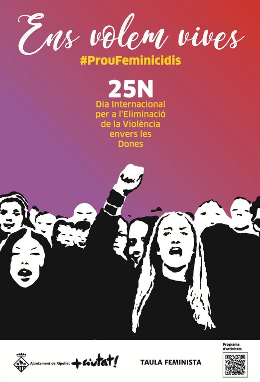 El programa 'Ens volem vives', amb activitats entre el 18 i el 27 de novembre, compta amb diverses exposicions, tallers i formacions, una xerrada, vídeo fòrum i teatre fòrum, projeccions de cinema, un programa de ràdio especial, una sessió de l'hora del conte per a infants i una lectura conjunta del llibre 'Tothom hauria de ser feminista". Aquesta lectura serà el primer dels actes previstos pel dia 25, que continuaran amb una marxa lila pel municipi, a la tarda, la lectura del manifest i una acció de denúncia a càrrec del Comitè de Dones de Ripollet (Vegeu el programa al document adjunt).