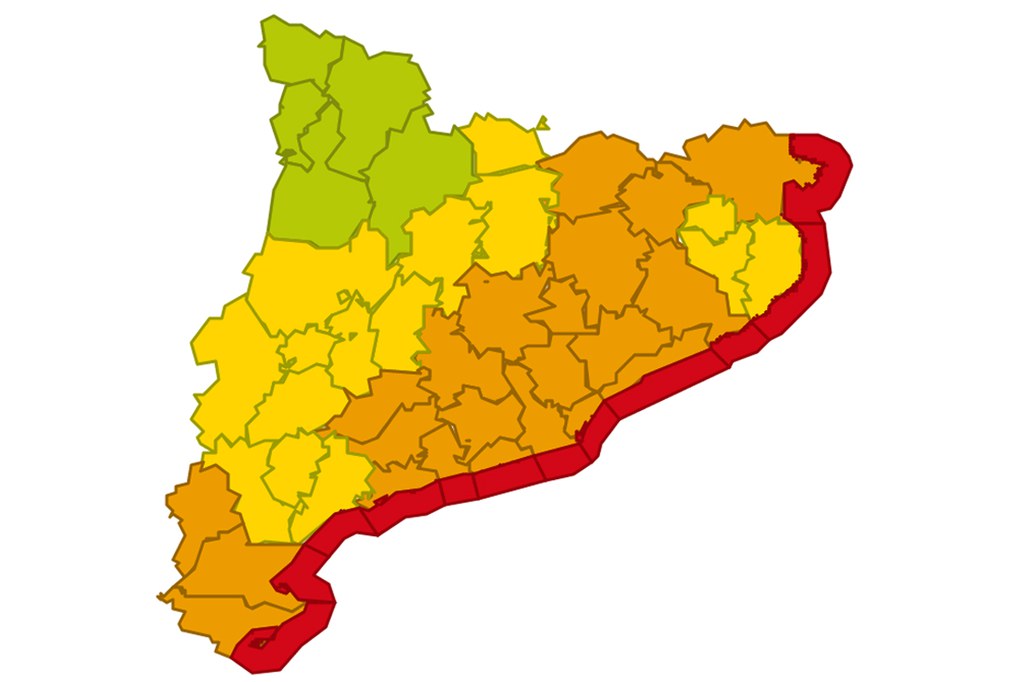 Dilluns: La setmana començarà amb precipitació en forma de neu a primeres hores del dia a les comarques litorals i prelitorals, especialment als extrems nord-est i sud. Aquesta precipitació pot donar-se de bon matí en cotes molt baixes i amb el pas de les hores anirà pujant de cota, nevant en comarques del prelitoral. Seguirà nevant, intensificant-se dimarts en cotes ja més altes, podent arribar a acumular 1.5m o 2m de neu nova fins i tot en cotes per sobre els 2.000 m en tot el temporal. Durant tot el dia el vent fort afectarà al litoral i prelitoral amb ratxes per sobre 80 km/h i valors sostinguts, així com fort onatge a tot el litoral, amb valors màxims per sobre els 7 m.