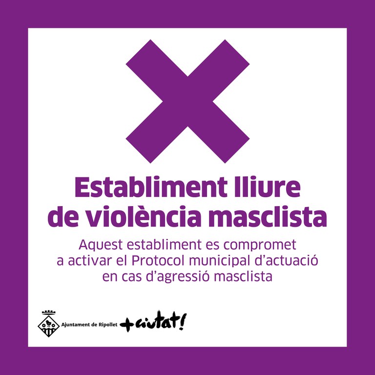 Aquesta identificació suposa que l'establiment assumeix la responsabilitat de garantir la seguretat de qualsevol persona víctima d'una agressió masclista i activar el protocol contra la violència sexista i LGTBIfòbica que l'Ajuntament de Ripollet va fer públic la passada Festa Major i que serà entregat i degudament explicat a cada establiment.