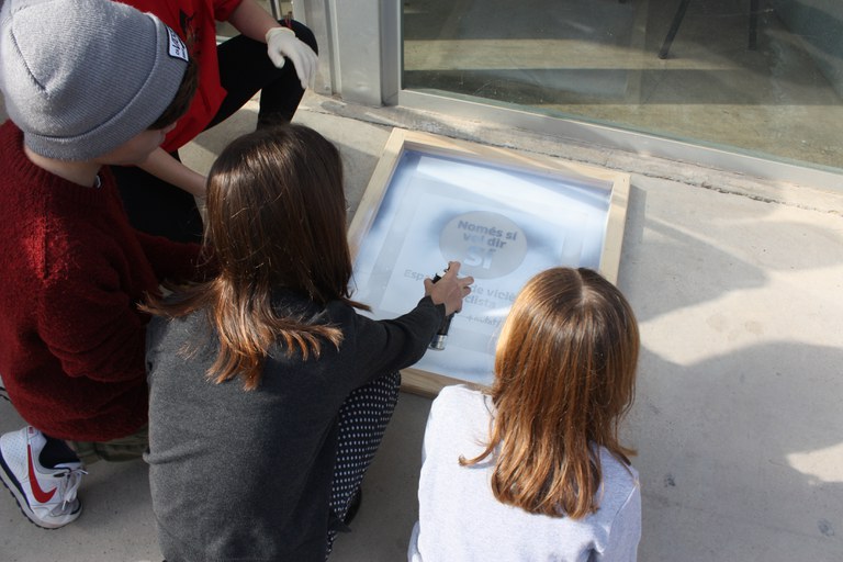 Es reparteixen els primers identificadors de la nova xarxa de punts segurs de violència masclista