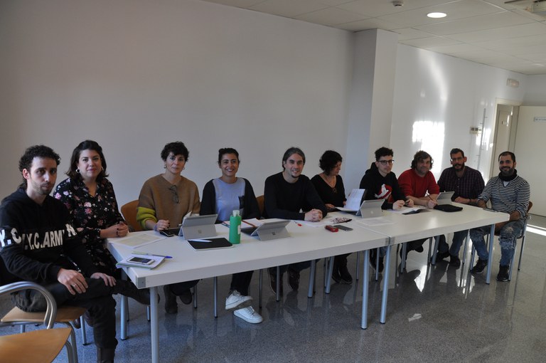 Fotos: l'equip de govern al complet, amb els seus 10 regidors, a la roda de premsa de presentació del PAM 2019-2023, el 18 de febrer, al Centre d'Interpretació del Patrimoni Molí d'en Rata.