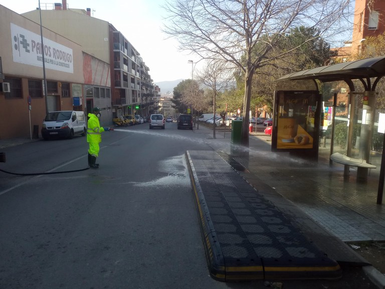 S'ha redistribuït el personal que es destinava a tasques a edificis que ara romanen tancats Aquest divendres i durant el cap de setmana es faran unes tasques específiques de neteja i desinfecció dels carrers i espais públics, especialment als entorns d'aquests equipaments o comerços que han de romandre oberts.