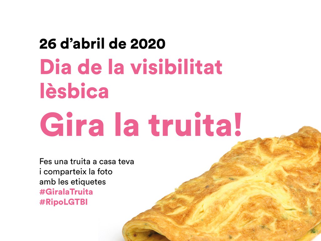 L'Ajuntament de Ripollet, en la línia de donar visibilitat i defensar els drets dels col·lectius LGTBI, celebrarà diumenge, 26 d'abril, el Dia de la Visibilitat Lèsbica. "El dia de la visibilitat lèsbica és molt important per a nosaltres, com a forma d'apoderament de la dona i de lluita contra l'estigmatització de moltes dones pel fet de ser dona i lesbiana", ha explicat el regidor de Polítiques LGTBI, Fran Sánchez.Gira la truita!