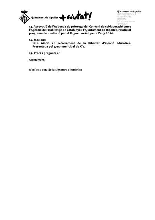 Les persones interessades podran seguir el Ple en directe a través de Ripollet Ràdio (91.3 FM), en streaming a ripolletradio.cat i en vídeo el canal de Youtube Ripollet TV, com ja es fa habitualment.