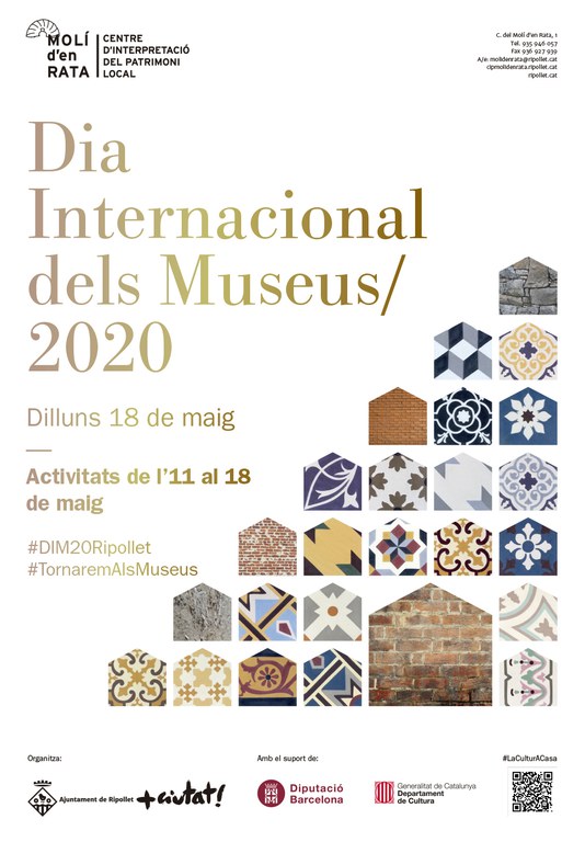 A més, durant tota la setmana a les xarxes socials municipals es duran a terme crides a la participació a través d'un Ripoquiz amb preguntes relacionades amb el patrimoni i història local; un challenge per recrear des de casa dues obres de l'Andreu Solà; i dues activitats del Juga amb la Història per fer en família i apropar-nos a la història d'una manera lúdica i divertida. Totes aquestes activitats es podran compartir amb les etiquetes #DIM20Ripollet i #TornaremalsMuseus.