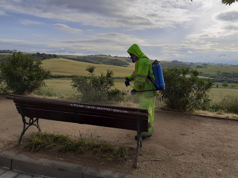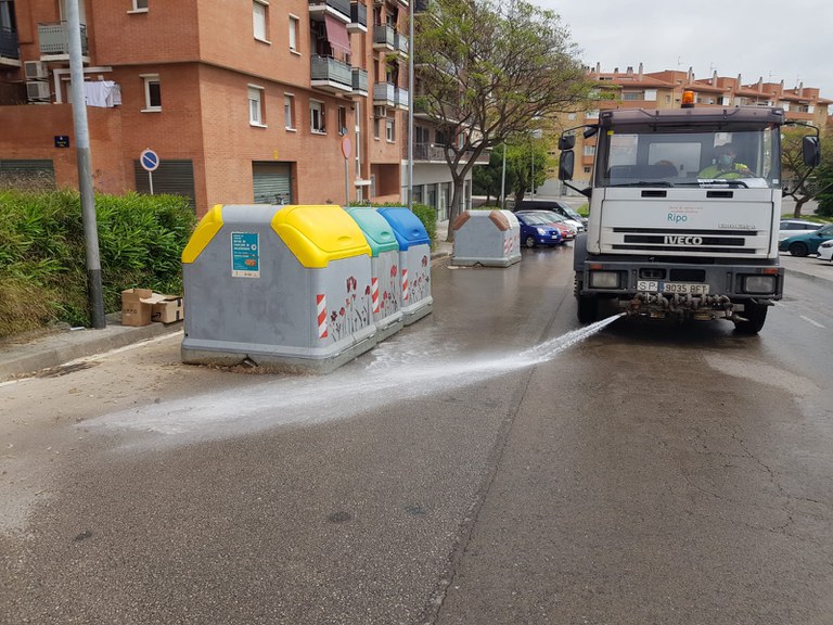 Pel que fa a les tasques de desinfecció, aquestes han restat reduïdes, amb un operari amb motxilla que realitza, de dilluns a divendres, la desinfecció d'espais públics concrets, com ara els CAP, el Mercat Municipal, la Comissaria dels Mossos d'Esquadra i de Policia Local. La resta de la jornada, desinfecta mobiliari urbà (contenidors, papereres, bancs, parades de bus i baranes), amb una freqüència de tot el mobiliari urbà de Ripollet d'un cop a la setmana.