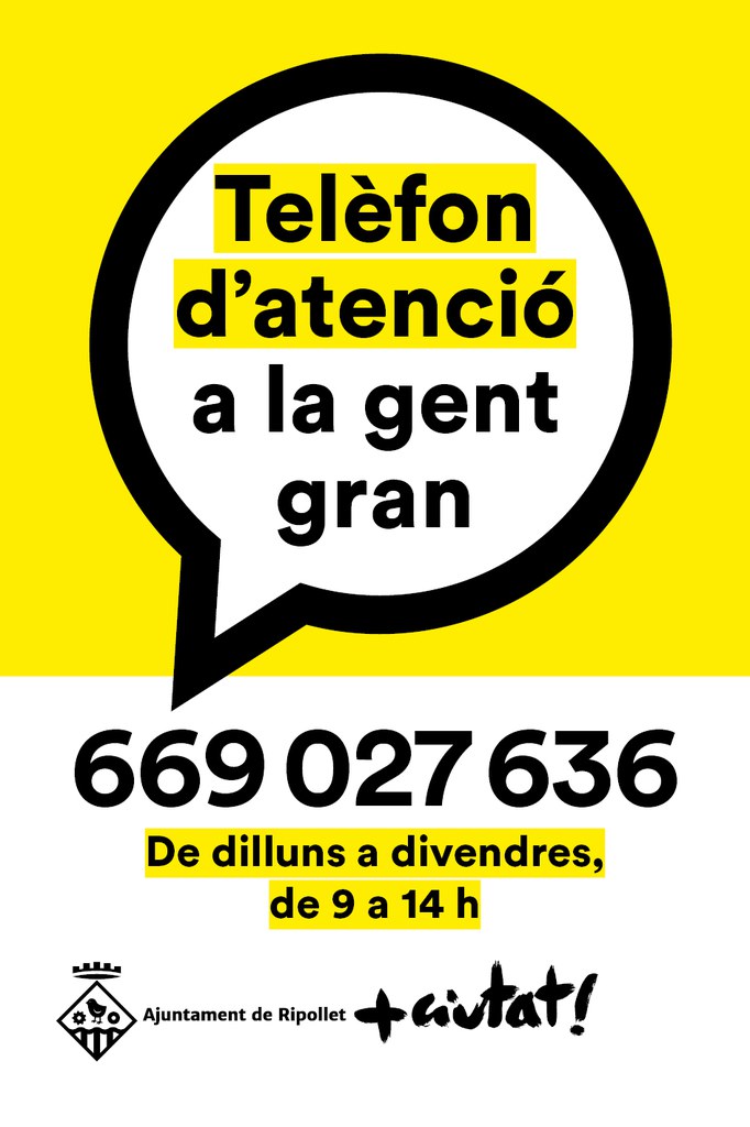 Els pròxim dies, l'Ajuntament adreçarà prop de 4.000 cartes a totes aquelles persones de Ripollet majors de 75 anys, on se'ls informa que ha habilitat una línia de telèfon específica perquè la gent gran pugui demanar informació o plantejar dubtes sobre qüestions relacionades amb els serveis que s'ofereixen a les persones grans. El telèfon de contacte és el 669 027 636 i funciona de dilluns a divendres, de 9 a 14 h. La carta adjunta un imant amb el número de telèfon i horari per tal que ho tinguin sempre a l'abast. També s'adjunta una mascareta higiènica de roba, cosida per les persones voluntàries de Ripollet Solidari, amb l'objectiu de conscienciar i facilitar que compleixin les mesures de seguretat i protecció personals adequades per tal d'evitar possibles contagis.