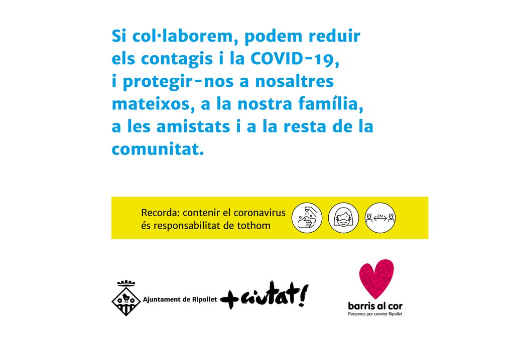 Els darrers dies, els centres sanitaris de Ripollet han detectat, a la zona de Can Mas, una major identificació de casos positius de la COVID-19. Per això, aquest dijous, 8 d'octubre, personal sanitari de l'Institut Català de la Salut iniciarà un sistema de contenció de la transmissió comunitària de la COVID-19, en els dos blocs amb una incidència major. Aquesta contenció consistirà a realitzar proves PCR a totes les persones que viuen en aquests edificis, independentment de quina sigui la seva situació personal o laboral, sense que sigui necessari presentar cap mena de documentació identificativa ni tenir targeta sanitària.