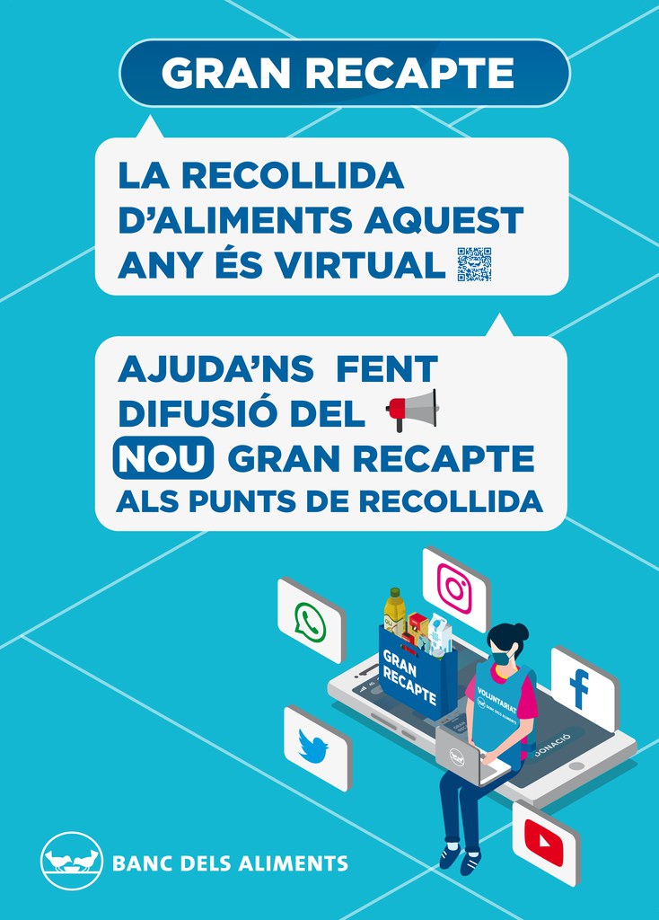 El grup coordinador de Ripollet del Gran Recapte ha fet una crida per captar voluntaris per a, almenys, dos grans supermercats de Ripollet, unes hores els pròxims 20 i 21 de novembre. Seria per informar a peu del punt de venda que aquest any les donacions es fan únicament a través del tíquet de la compra. Es necessita una desena de persones per atendre els 3 torns de 4 hores que s'organitzaran. Per oferir-se cal registrar-se a través d'aquest enllaç. L'organització ha demanat que siguin persones joves i no com fins ara, que eren majoritàriament gent gran, per ser col·lectiu de risc.