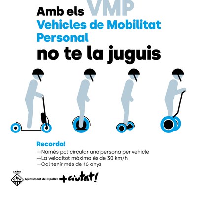 L'Ajuntament ha editat diferents materials informatius amb l'eslògan 'Amb els Vehicles de Mobilitat Personal no te la juguis', com ara cartelleria i díptics, que Policia Local utilitzarà per difondre les normes bàsiques d'aquesta ordenança i aclarir dubtes a peu de carrer. També oferirà xerrades als instituts i a diferents col·lectius, com és el cas de l'alumnat i les persones usuàries de diferents programes de l'àmbit de Desenvolupament Econòmic.