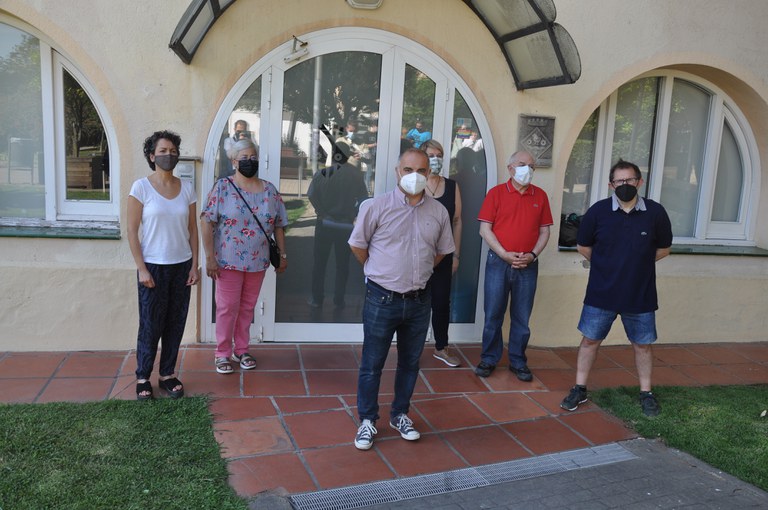 Foto: Luís Tirado, portaveu del PSC, acompanyat d'un representació de regidors del grup socialista, a la roda de premsa de divendres passat, davant l'Ajuntament de Ripollet.