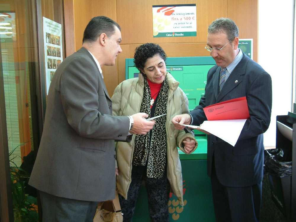 L’Ajuntament de Ripollet i Caixa Penedès van presentar dimecres 16 de febrer el nou servei de venda de tiquets de menjador a través de caixer automàtic. Actualment, uns 600 nens i nenes dinen als menjadors escolars, amb un cost per àpat de 4’65 euros. A més de la facilitat horària, cal destacar que el nou servei és a l’abast de qualsevol persona, sigui o no client de Caixa Penedès, i sense cap tipus de comissió, tant si es tracta d’operacions de dèbit com de crèdit. La iniciativa serà provada a Ripollet de manera pilot i pròximament s’estendrà a altres municipis. L’acte d’inauguració, celebrat a l’oficina 169 de la rambla de Sant Jordi, va comptar amb la presència de l’alcalde de Ripollet, Juan Parralejo, la regidora d’Educació, Malika Zedjaoui, el director de l’oficina, Gabriel Berandon i el cap de zona, Miquel Ortega.