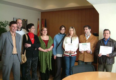 El tinent i les tinentes d’Alcalde Xavier Peñarando, Rosa Mª Martín i Malika Zedjaoui i el regidor de Comerç, Ferran Tornel, van lliurar el dimecres, 16 de febrer, els premis que concedeix l’Ajuntament dins el Concurs d’aparadors i parades de mercat que organitza per Nadal la Cambra de Comerç de Sabadell. El primer premi local d’enguany ha estat, per sisena vegada consecutiva, per a Flors Montcada. Jaume Sancho, propietari d’aquest comerç, que també ha estat guanyador els anteriors 5 anys del premi comarcal, va rebre de mans del regidor un diploma i un xec per valor de 240 euros. El segon i tercer premi han estat atorgats al Forn Pastisseria Salud i a la polleria Sergio Nevado, dotats amb diploma i un premi econòmic de 180 i 120 euros, respectivament. Els guanyadors rebran una menció honorífica de la Cambra de Comerç en el decurs del sopar de lliurament de premis, que tindrà lloc el proper dijous, 24 de febrer.
