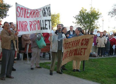Un grup de veïns es manifesta davant l'Ajuntament per a demanar el soterrament de la C-58