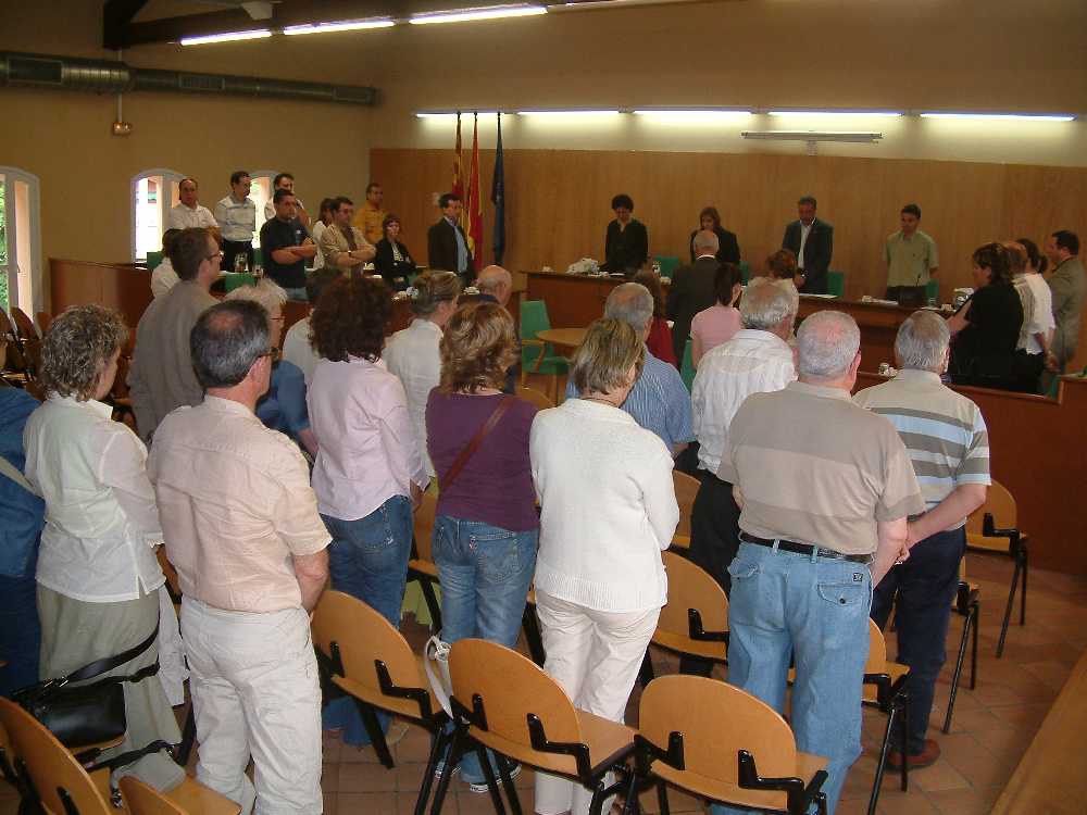 FOTO. Moment del minut de silenci en record a l'exalcalde, Carles Ferré, mort el passat 13 de maig.