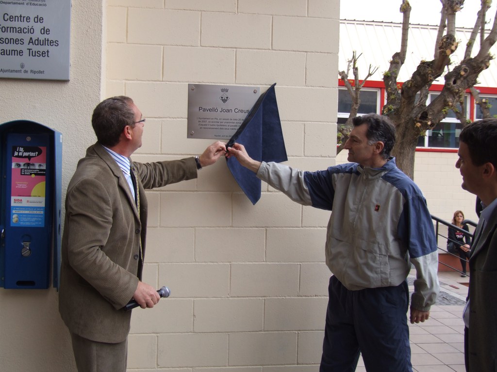 L'acte es va iniciar a l'exterior del Pavelló amb la descoberta d'una placa commemorativa per part de l'alcalde de Ripollet, Juan Parralejo i del propi Creus.