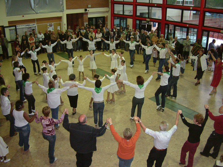 Tot seguit, altres patinadors, entre ells els fills de Joan Abad, juntament amb membres de Ripollet Sardanista, van sortir a la pista per ballar, amb patins i sense, la sardana 'La santa espina'. La colla dels trabucaires de Ripollet va fer sentir les seves armes just abans de descobrir la placa que dona nom a partir d'ara a aquesta plaça. Joan Abad, que va morir el passat 18 de desembre, a l'edat de 78 anys, havia estat president d'honor del Club Patinatge Ripollet i membre d'honor del Patronat Municipal d'Esports.