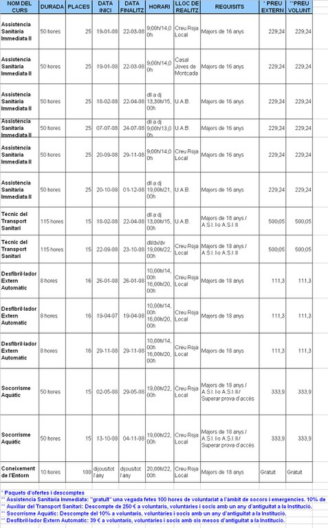 L'Assemblea Comarcal de la Creu Roja ha donat a conèixer l'oferta formativa pel 2008, que va dirigida principalment a associats i voluntaris de les ONGD. Entre els tallers proposats destaquen els d'Assistència Sanitària Immediata així com els d'especialització per treballar en el camp de les ambulàncies i el del socorrisme aquàtic.