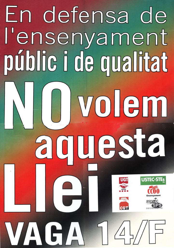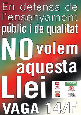 La jornada de vaga convocada per aquest dijous, 14 de febrer, per cinc sindicats en l'ensenyament públic de Catalunya s'està desenvolupant amb normalitat als centres de la població. El motiu de la vaga és exigir la retirada de les bases de la futura Llei d'Educació de Catalunya, presentat pel conseller, Ernest Maragall. Tots els centres d'educació primària públics, amb excepció dels CEIP Pinetons i El Martinet han secundat la vaga. Aquests, tot i complir els serveis mínims exigits per decret per la Generalitat, no han comptat amb alumnes, ja que prèviament havien fet arribar a les famílies una carta informant que hi hauria vaga. Pel que fa als instituts, ha estat desigual el suport dels professors.