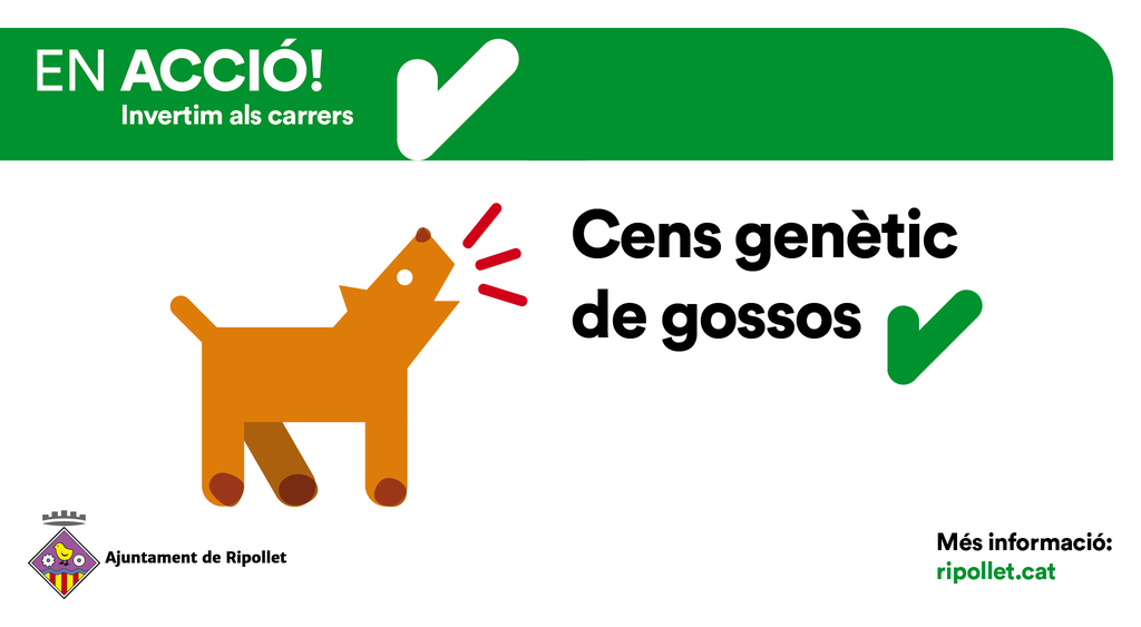 La Junta de Govern Local ha aprovat l’inici de la licitació del contracte de serveis, per a la implantació i manteniment del cens genètic caní amb mostres d'ADN a Ripollet, així com la seva aplicació per a la disminució de la presència d'excrements en la via pública mitjançant la identificació genètica de mostres biològiques.Tindrà una vigència de fins a 4 anys i un import de licitació de 445.769,19 €.