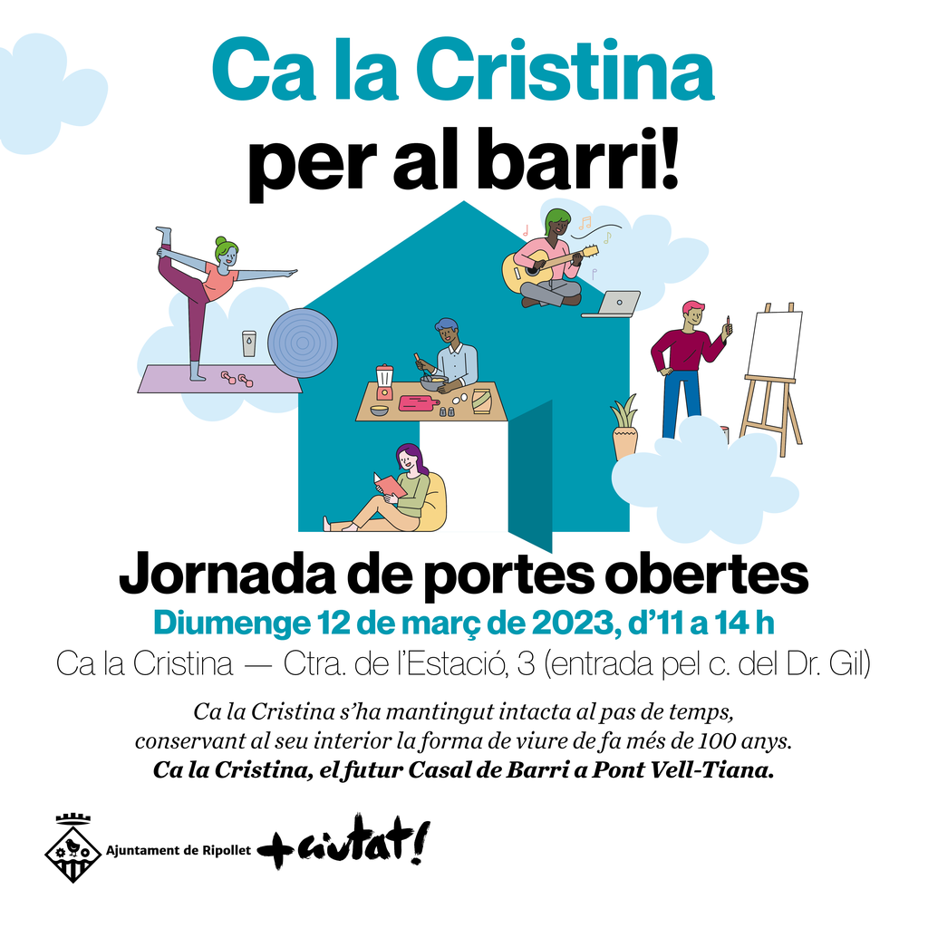 L’Ajuntament de Ripollet organitza aquest diumenge, 12 de març, una jornada de portes obertes a Ca la Cristina, el que serà el futur Casal de Barri als barris de Tiana-Pont Vell. La visita es podrà fer d’11 a 14 h per l’entrada del carrer del Doctor Gil. "Aquells que vinguin podran veure la casa per dins i quin interès té, ja que l’edifici està com si no hagués passat el temps, sobretot la zona del pati i l’espai per als animals", va explicar la tècnica de Patrimoni de l’Ajuntament, Elena Vilalta, a l’Info Setmanal d’aquest passat dijous, 9 de març. A la visita, hi serà present un dels arquitectes que s’encarrega del projecte, del grup d’arquitectes Col·lectiu Brusi, que "explicarà com s’està treballant el projecte i quines possibilitats té la casa per al barri".