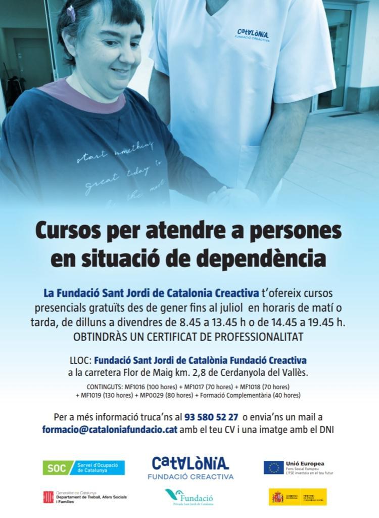 Catalònia Fundació Creactiva, ubicada a Cerdanyola del Vallès, imparteix des d'aquest mes de gener cursos per a la titulació oficial en Atenció Sociosanitària a persones en situació de dependència en institucions socials i a domicili. Es tracta d'un sector amb una alta inserció laboral. El títol és imprescindible per poder treballar en residències i atenció domiciliària a persones dependents.