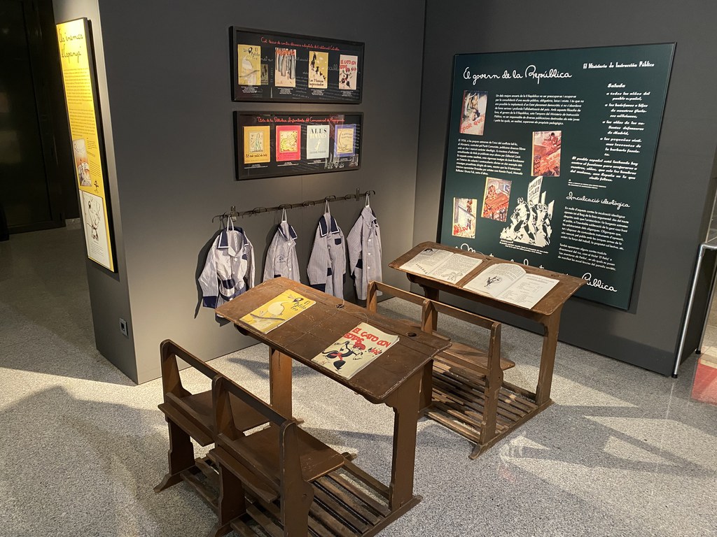 "Contes en guerra" és una exposició que tracta sobre l'adoctrinament que patien els nens i nenes durant la Guerra Civil, per part d'ambdós bàndols de la guerra. En un moment en què els més petits, moltes vegades, no entenien el que estava passant, des del poder es treballava perquè la informació que els hi arribés fos amb una gran càrrega política i ideològica, a favor dels seus principis, i en contra de "l'enemic".