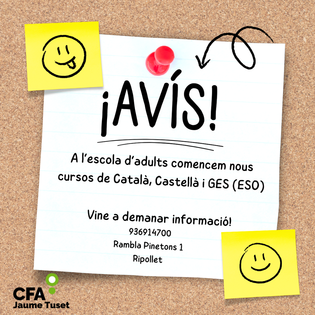El CFA Jaume Tuset inicia nous cursos de català, castellà i Graduat en Educació Secundària (GES) durant aquests mesos de gener i febrer de 2024
