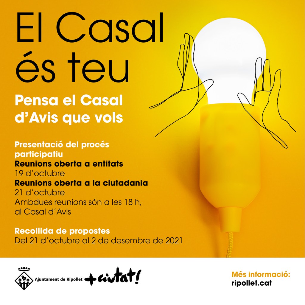 Sota el nom 'El Casal és teu', l’Ajuntament posa en marxa aquest mes d’octubre un projecte per tal d’actualitzar els objectius, espais, serveis i activitats del Casal d’Avis.