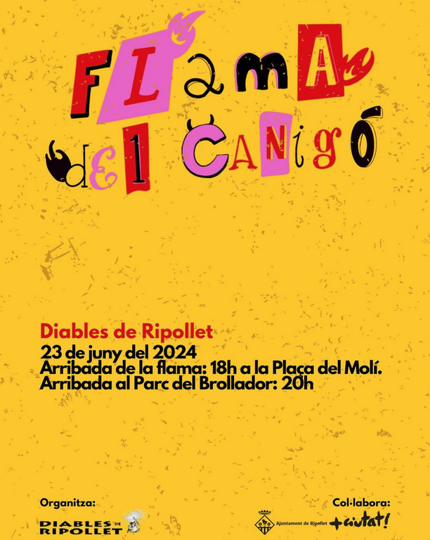Primerament, els Diables de Ripollet, que celebren enguany el seu 40è aniversari, tornaran a portar a Ripollet la Flama del Canigó, un acte cultural i tradicional que no es feia al municipi des del 1987. De bon matí, Diables anirà a buscar la Flama per encendre les fogueres de Sant Joan al peu del Canigó i a les 18 h, arribarà a la plaça del Molí, on es realitzarà una exhibició de cultura popular. Seguidament, es portarà la flama fins al brollador del parc dels Pinetons, on està prevista la revetlla de Sant Joan organitzada pel Col·lectiu Popular l'Aresta i que comptarà amb un sopar popular, espectacle de foc i festa per celebrar aquest Sant Joan.