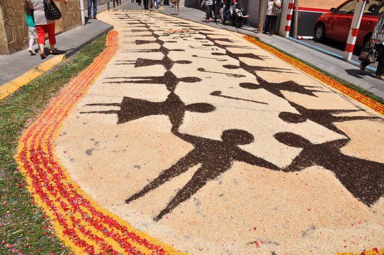 Després de la pandèmia, les tradicionals catifes florals de Corpus tornen a omplir Ripollet. La festivitat de Corpus compta amb diversos actes, com la tradicional missa solemne i la processó, l’ou com balla i la ballada de sardanes.