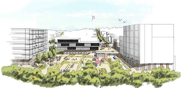 S'aposta per una avinguda metropolitana que integri tots els fluxos de mobilitat sostenible (voreres àmplies, carrils bici, espais de circulació i parada dels autobusos) i que s’ampliï mitjançant una seqüència de places que han de potenciar l’encontre social entre les persones que conviuran en aquest barri: veïns, personal de l’hospital, pacients, familiars i altres que vinguin a fer alguna activitat al barri.