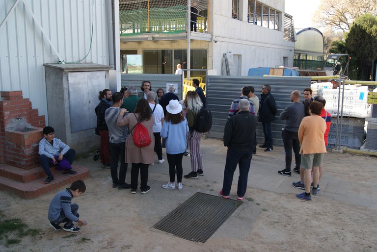 La visita va començar pel soterrani, il·luminat amb el sistema de pati anglès, on tindran cabuda les noves dependències del Club Tennis Taula i quatre locals per a entitats esportives. En aquest espai, es va fer una petita presentació del projecte i les fases per les quals passarà la construcció. Destaca pels sostres, alts, els espais diàfans, amplitud de les vies de pas i les escales, adequats al gran nombre d'abonats i ús intensiu de les instal·lacions.