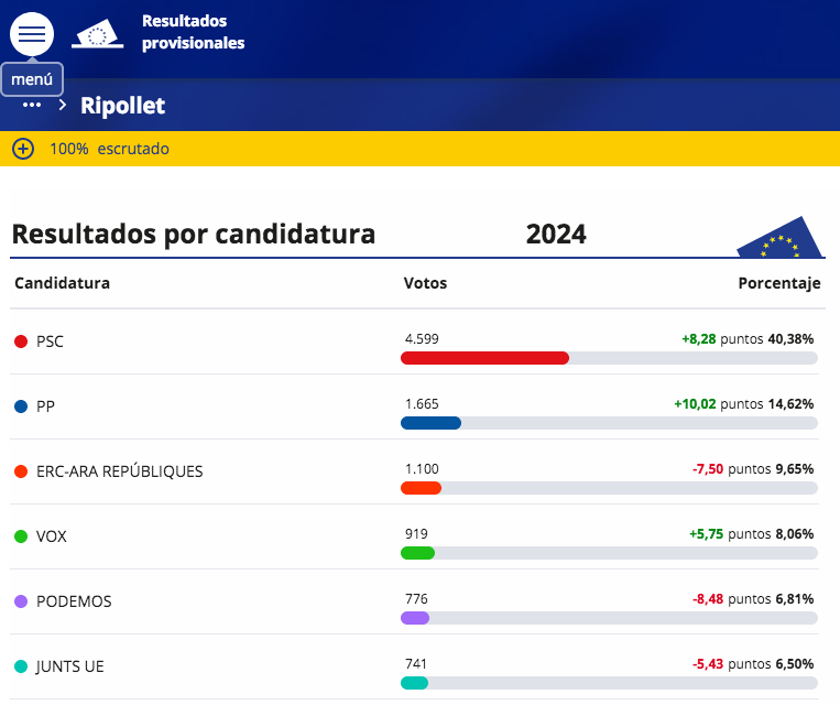 Consulta les dades, amb l'escrutini ja finalitzat, de les Eleccions Europees 2024.
