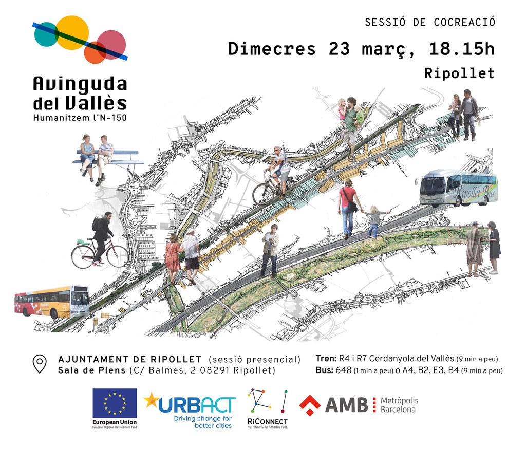 Es tracta de la 8a sessió participativa que vol repensar i transformar l'entorn de la carretera N-150 al seu pas per Barberà del Vallès, Cerdanyola del Vallès, Ripollet i Montcada i Reixac. La trobada tindrà lloc a la Sala de Plens de l'Ajuntament de Ripollet, a partir de les 18.15 h.