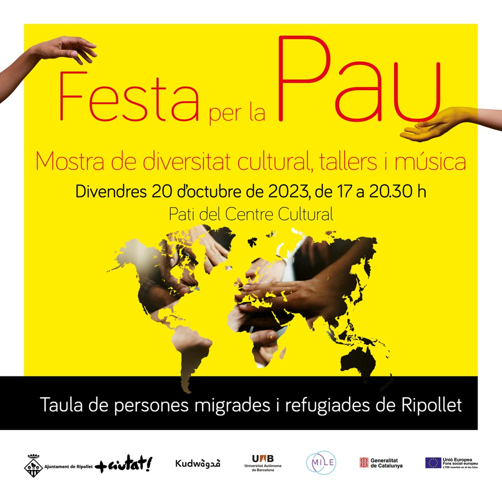 L’acte suposa la cloenda del treball fet en el marc del projecte MILE, a través del qual s’ha treballat per constituir la Taula de persones migrades i refugiades de Ripollet. Comptarà amb tallers, espai de testimoniatge i música per la pau.