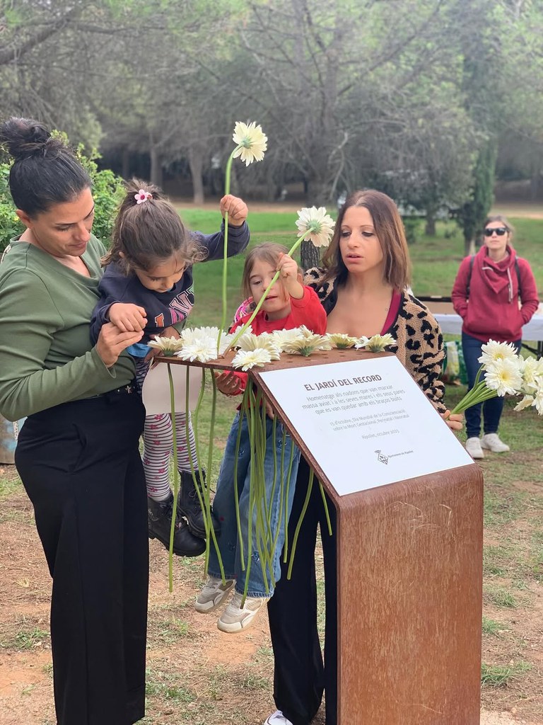 Després dels parlaments, les persones assistents van dipositar flors blanques al pedestal del Jardí del Record, abans de donar pas al ritual íntim guiat per la doula Laura Calderón, per a les famílies que han viscut una pèrdua.